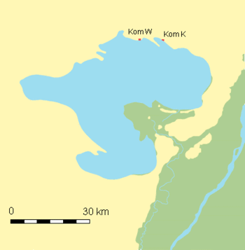 Localização dos sítios faiumianos de Kom W e Kom KA cultura Faiumiana desenvolveu-se entre 5400-4400 a.C. ao norte do lago Qarun, local onde a cultura epipaleolítica cultura Qaruniana prosperou; segundo Vermeersch e Hendrickx "Diferenças tecnológicas e tipológicas entre a Qaruniana e a Faiumiana são tão significativas que não pode haver questão da Faiumiana tendo desenvolvido fora da Qaruniana". Além disso eles argumentam que a indústria lítica Faiumiana está relacionada com as tecnologias tardias do neolítico do deserto ocidental; Midant-Reynes acredita que esta cultura originou-se do Oriente: "Parece possível que o neolítico do Vale do Nilo pode ser surgido do Saara oriental, o Faium poderia, portanto, ter sido uma das primeiras áreas ocupadas no momento do deslocamento das populações em direção ao rio, sob a pressão das condições áridas que prevaleceram no milênio VI a.C. É por essa razão que Kozlowski e Ginter (1989) interpretam a Moeriana (a segunda fase do neolítico de Faium) como um eco tardio destas tradições saarianas, dada a sua tecnologia de lâmina/lamela dos líticos encontrados no oásis Siwa. A Faiumiana (a primeira fase do neolítico de Faium), por outro lado, poderia ter tido as suas origens no Oriente Próximo".